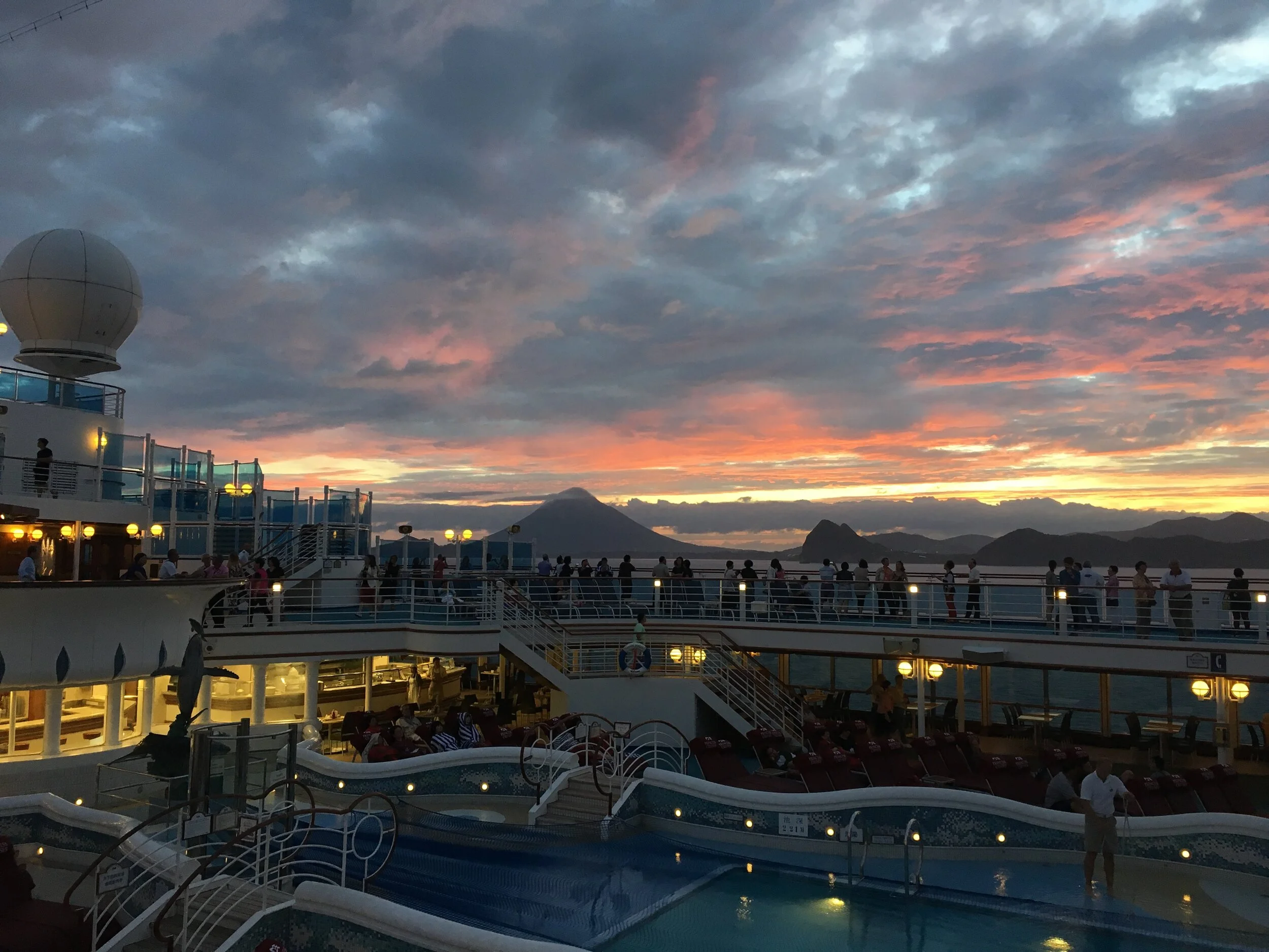 The second photo was taken on a sea day, sailing between Shanghai and Fukuoka. Check out those dreamy and silky seas.