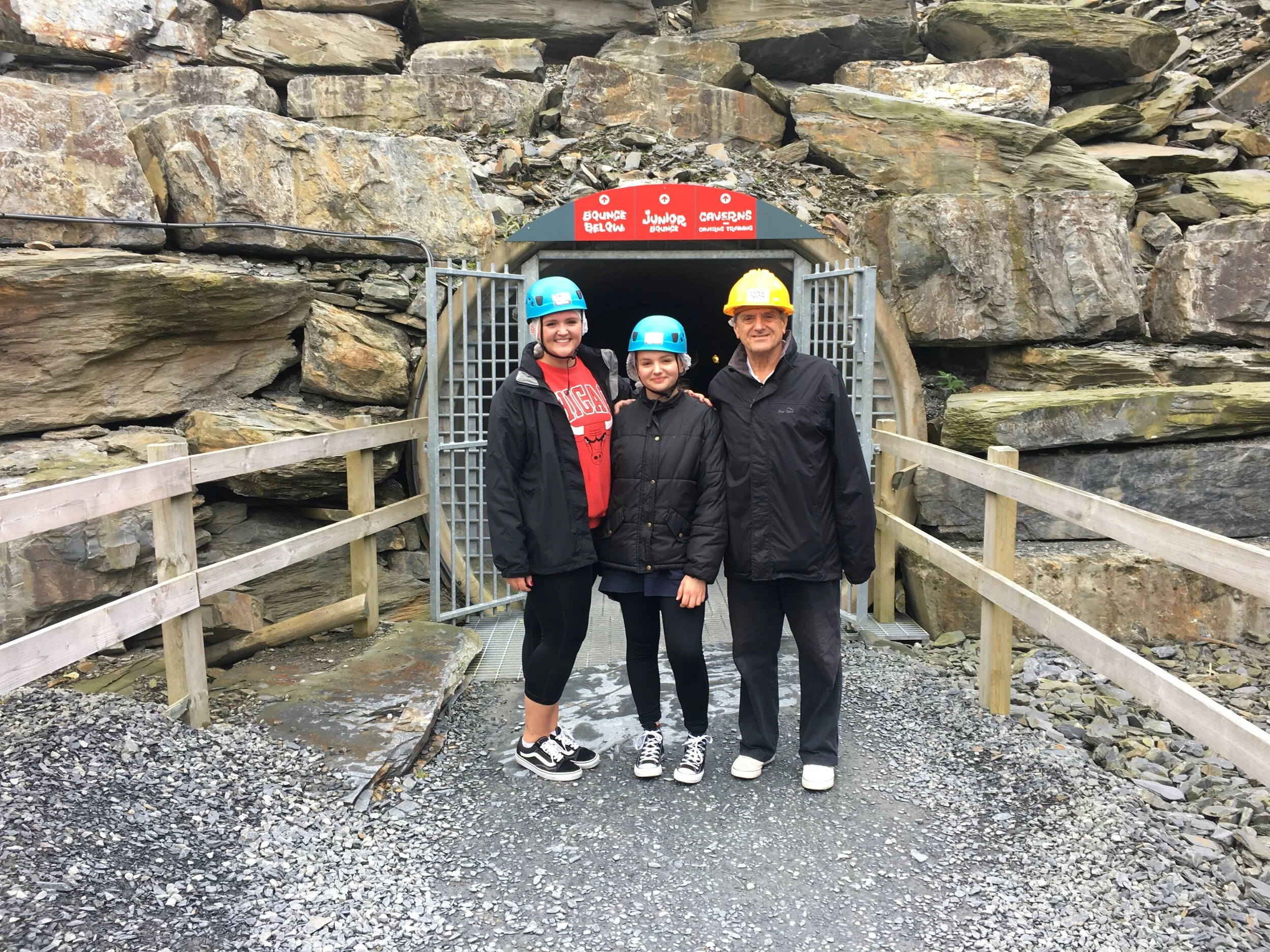 The next day we drove 35 minutes through the Snowdonia National Park to our first adventure spot. Located at Zip World Slate Caverns, Blaenau Ffestiniog and founded by Zip World in 2014, Bounce Below is an underground slate cavern, filled with trampolines, slides and tunnels. Before entering we were given hair nets, a hard hat each and a quick debriefing of Bounce Below.