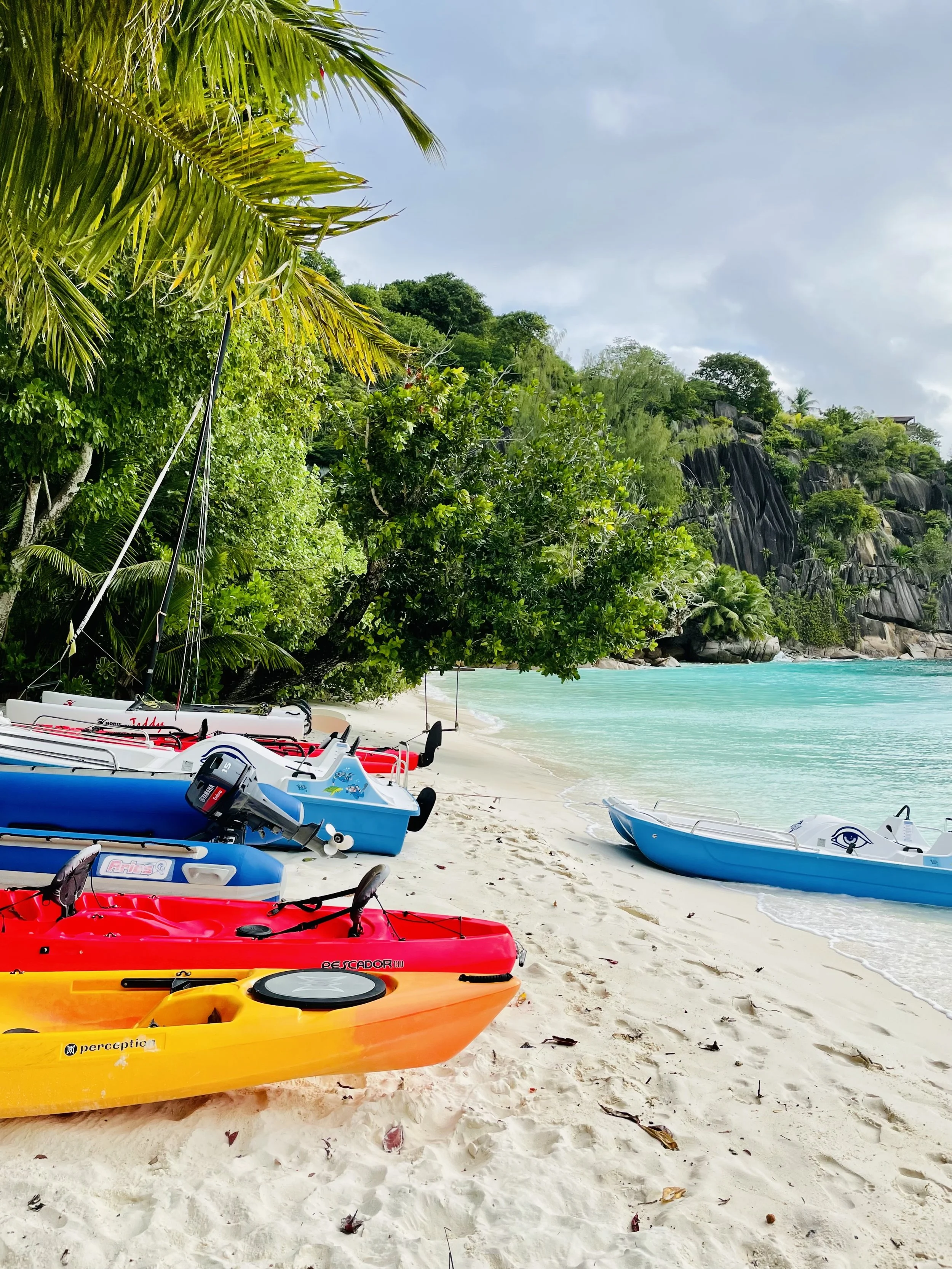 Beau Vallon sits on Mahé’s northwest coast and is one of the most popular beaches in Seychelles. It’s easily accessible, family-friendly, and lined with hotels, restaurants, and water sports operators. This is the go-to spot for swimming, snorkelling, and sunsets, with a relaxed atmosphere and plenty of space.