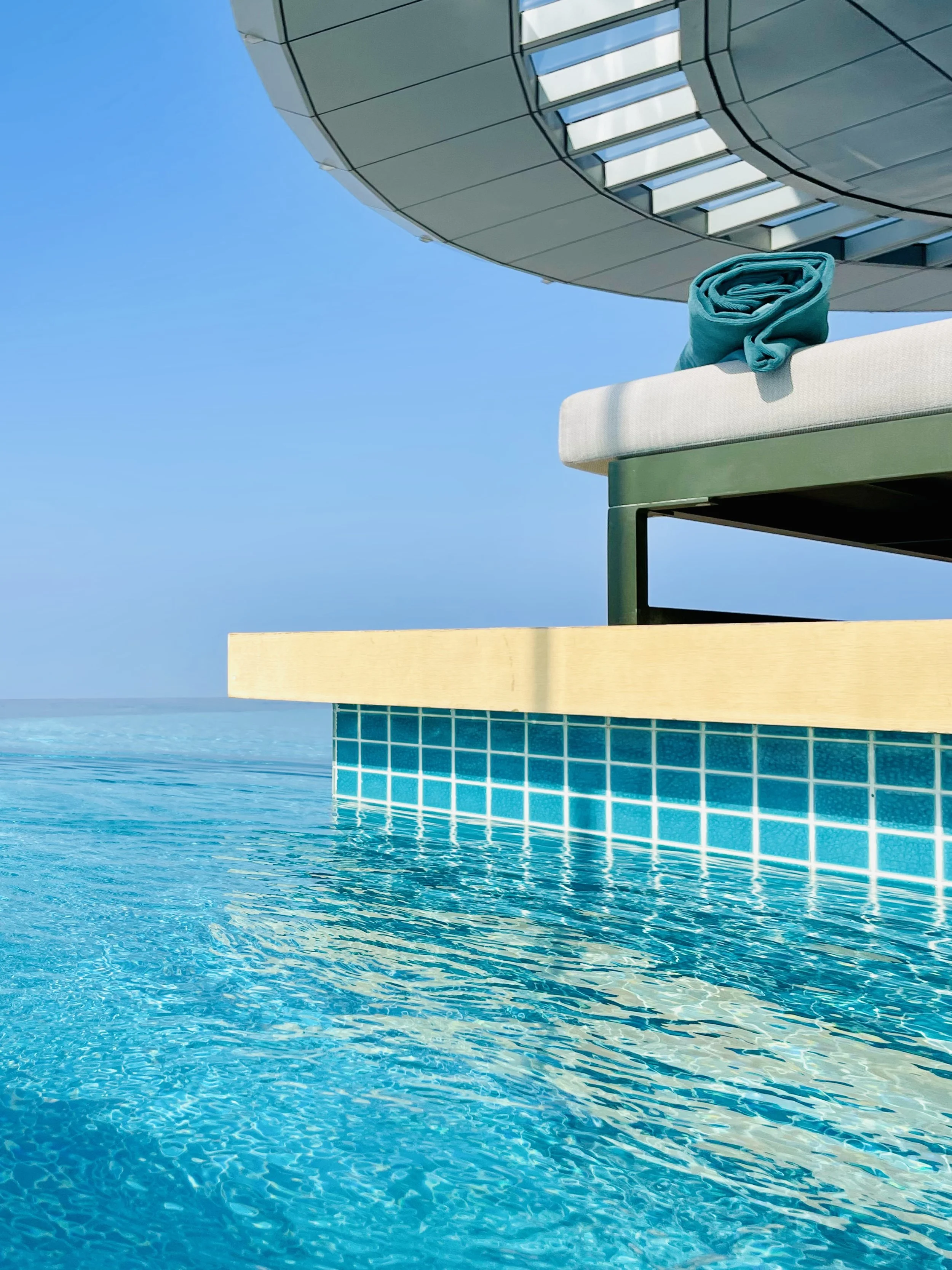 Situated on the 50th floor of Palm Tower on Palm Jumeirah, Aura Skypool is open daily with two main sessions: morning from 10 PM to 2 PM (AED 250) and afternoon from 3 PM to 7 PM (AED 300). It’s an elegant rooftop pool offering unobstructed views of Dubai Marina and the city skyline. The pool area has shaded seating and cooling breezes, making it a popular summer escape. Expect a relaxed atmosphere with a bar and light bites, perfect for lounging during the cooler parts of the day.