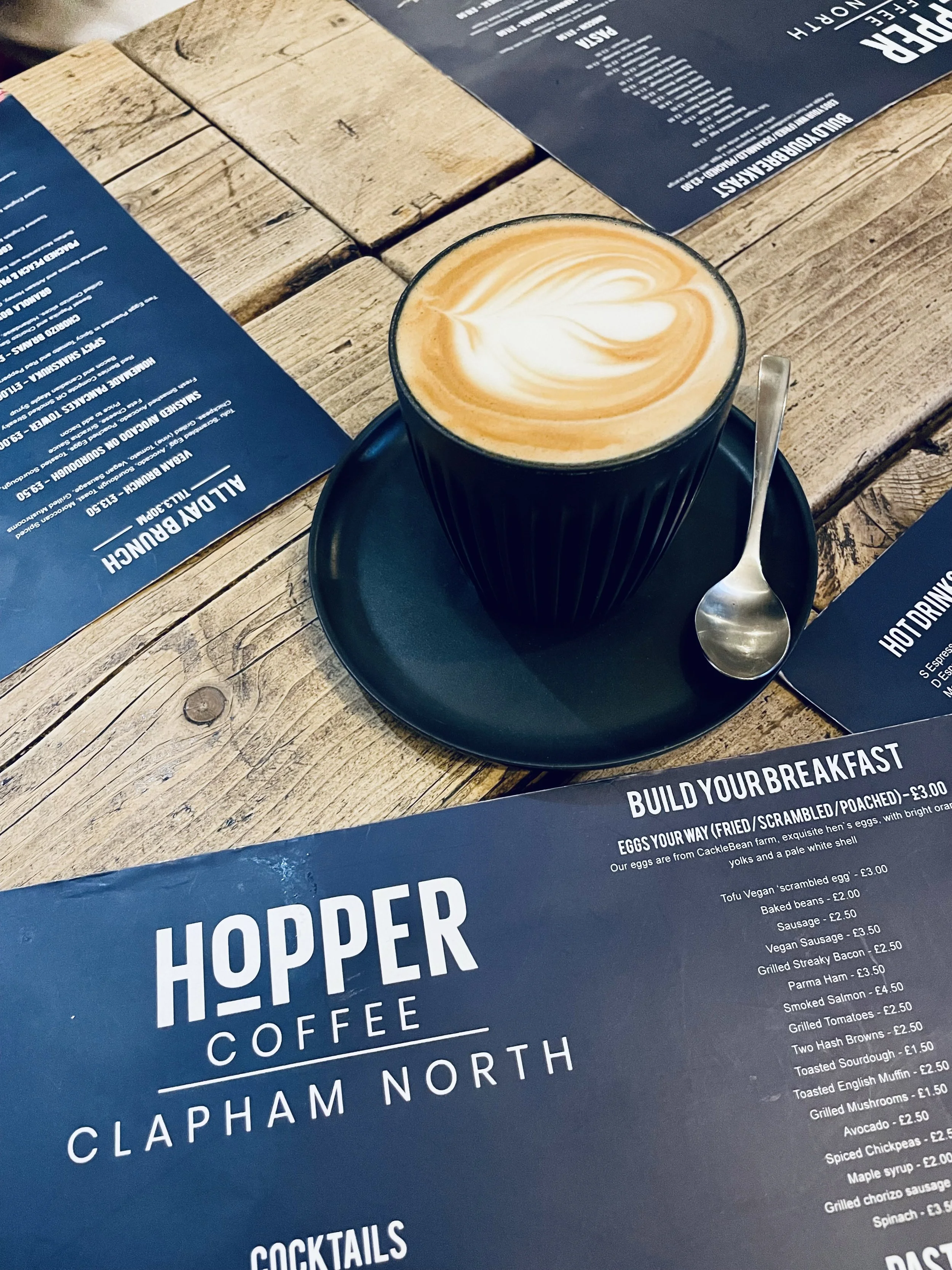 Tucked away near Clapham North station, Hopper is the kind of cosy, independent café that locals love to keep secret. Expect great coffee, flaky pastries, and an inviting, minimalist interior. It’s a perfect morning stop if you're exploring south London. Their menu keeps things simple but well done—think perfectly pulled flat whites, homemade banana bread, and weekend specials that sell out fast. Seating is limited, but the vibe is warm and welcoming, ideal for a solo coffee or catch-up with a friend.