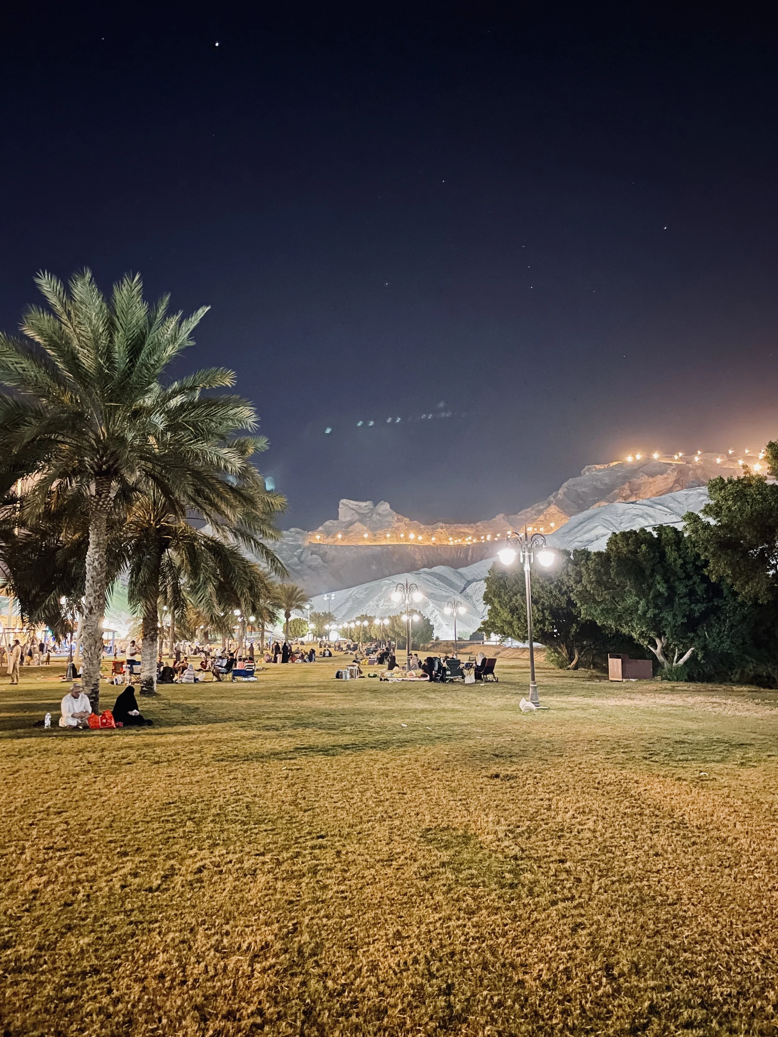 Jebel Hafeet is Abu Dhabiβs highest peak, rising 1,240 metres above sea level on the border with Oman, near the city of Al Ain. The mountain is known for its winding road, considered one of the most scenic drives in the UAE, with panoramic views of the desert and the city below. At the summit, there are viewing platforms and a cafΓ© where visitors can watch the sunset. The area around Jebel Hafeet is also home to hot springs and archaeological sites, including ancient tombs dating back to the Bronze Age, which are part of the UNESCO-listed Al Ain cultural sites. The cooler temperatures at higher elevations make it a popular spot during the evening, and it is accessible by car, with several parking areas along the route.